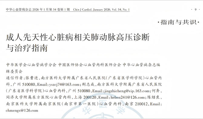 心内科牵头制定国际首部《成人先天性心脏病相关肺动脉高压诊断与治疗指南》