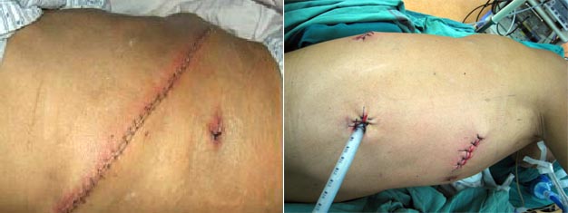 传统手术腹部和颈部切口 腹部微创手术切口