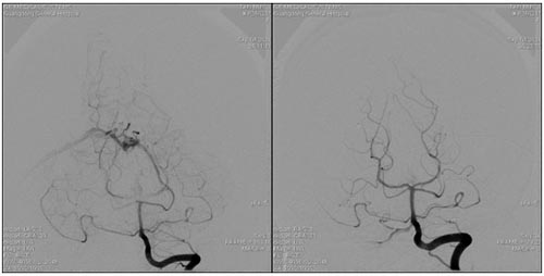 小脑动静脉畸形栓塞术前 小脑动静脉畸形栓塞术后