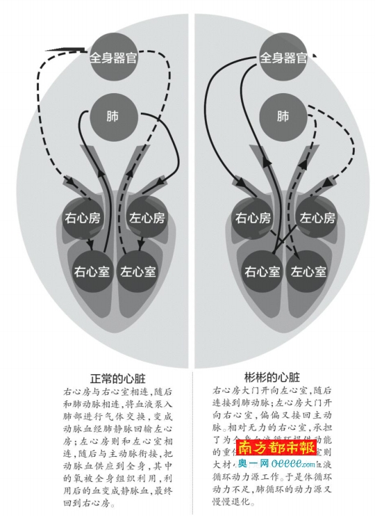 问题是,相对无力的右心室承担了为全身血液循环提供动能的重任,相对强力的左心室则大材小用地承担了肺部血液循环动力源工作。于是体循环动力不足,肺循环的动力源又慢慢退化。彬彬的先天性心脏病成了罕见且拗口的纠正型大动脉转位、室间隔缺损、房间隔缺损、Ⅲ房室传导阻滞……心脏功能日渐衰落。