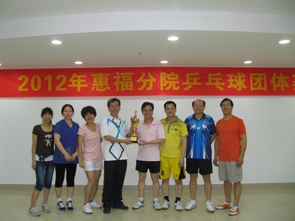 为了丰富职工的业余生活,增强职工的体质,培养职工团结合作精神,惠福分院党总支、工会组织分院全体职工于5月27日下午在三楼多功能厅举行了惠福分院2012年乒乓球团体赛。