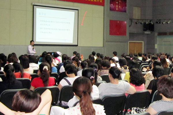 2011年5月25日晚上,由内科总支和大内科片工会共同组织,共有350多名医护人员主动利用休息时间齐聚在多功能厅共同学习了医护人员的安全管理和如何做好自我的心理保健。这次学习由大内科科护长邝惠冰、内科总支副书记林惠群组织、内科总支书记杨华章主持,内容分两大部分:一、我院精神疾病研究所、心理精神科的谢永标主任授讲的心理保健——压力的理解与应对;二、医务处王越洪处长主讲医学法律讲堂、医疗安全暨案例分析。