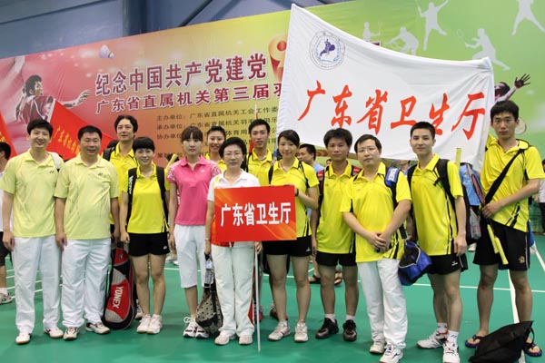 为庆祝中国共产党建党90周年,充分展示省直机关干部职工的精神风貌,省直机关工会主办、省直机关羽毛球俱乐部承办的“迎接建党90周年,推动全民健身”省直机关第三届羽毛球团体赛于6月7-8日隆重举行。本届比赛水平之高、人数之多、规模空前。我院党委副书记崔建星、工会副主席邓南率领陈民、冯航、张颉驰、万伟和陈敏乐等12名运动员代表卫生厅队参加了本届大赛。比赛在西关体育俱乐部举行,共有83个厅局级单位,1303名运动员,103名裁判员参加。6月7日上午的开幕式上,省直工委罗东凯书记等二十多名厅级干部出席并致词表示祝贺。