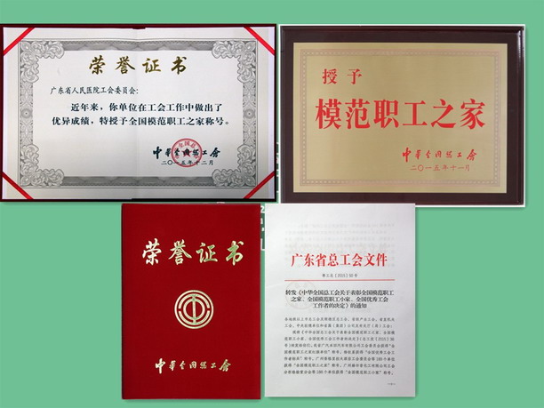 我院工会现有会员5400多人,全院职工入会率100%。近年来,院工会切实履行工会职责,通过形式多样的活动为职工送温暖、送健康、送文化、送快乐,当好白衣天使的“娘家人”。 通过深入开展“职工之家”建设工作,在医院民主管理、关爱职工、职工教育、权益维护等方面做了大量的工作, “职工之家”文化成为凝聚职工和谐和向心力的一面旗帜,推动医院工会工作不断发展, 近几年先后荣获全国工人先锋号、全国优秀职工书屋示范点、全国教科文卫体系统先进女职工组织、广东省五一劳动奖状、省模范职工之家、广东省首批省级厂务公开民主管理示范单位、广东省先进集体等荣誉称号,在医院建设发展中发挥了重要作用,为创建“全国模范职工之家”奠定了深厚基础。