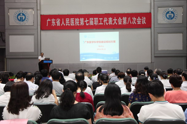 2016年8月22日,在院领导指导下,院工会在门诊住院楼4楼多功能厅组织召开我院第七届职工代表大会的第八次全体会议,审议广东省医学科学院规划总体方案。会议由张念樵书记主持。