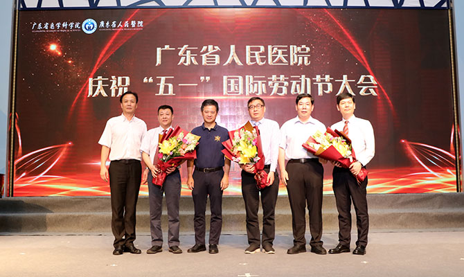 随后,大会隆重表彰了2019年度各级的劳模先进个人。2019年,医院的推优成绩硕果累累,在省医的劳模榜上,又增添了三个闪亮的名字:陈纪言主任荣获全国五一劳动奖章,陈寄梅所长荣获广东省五一劳动奖章,范瑞新主任荣获“南粤工匠“光荣称号。大会用视频展播的方式向与会观众展示了三位劳模的先进事迹。随后在全场观众热烈的掌声中,三位劳模上台发表感言,在场的院领导为他们赠送了鲜花。