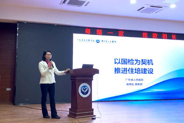 教育处郭莉莉处长以《以国检为契机、推进住培建设》为主题做了专题讲座。讲座介绍了医学教育的发展历程,以及住培教育是毕业后医学教育工作的重中之重,强调了培训医师是医院发展的未来,师资培训则是这项工作中最基础也是最重要的一环。同时提出国家住院医师规范化培训基地综合评估是提高教学工作的重要契机,国家住培基地综合评估检查指标是衡量住培基地管理规定与否的金标准。如何抓紧这一契机,需做到国家检查前要造势,国家检查中要借势,国家检查后要乘势;也就是在此契机中完善制度建设、师资培训、过程管理以及考核评价等工作,推动建设以学生为中心,以能力建设为本,始终坚持教学相长的培训基地。住培工作是一项系统工程,需始终坚持“全局谋划、系统构建、乘势而为、因势利导、资源保障、善作宣传、以点带面、持续改进”的理念才能做好这项工作。