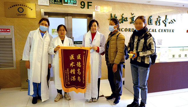 廖宁教授告诉卓玛妈妈,6mm乳腺癌的早期诊断和早期治疗,可以显著的提高预后,达到临床治愈,卓玛以后可以像正常的女孩子一样结婚生子。卓玛妈妈将洁白的哈达献给廖宁教授,眼含泪水的握着廖主任的手说:“感谢廖主任给了卓玛第二次生命,给了我们全家的希望,让我们深深的感受到了民族一家亲。”