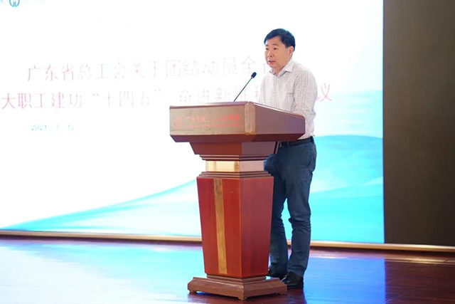 在下午的培训会上,邓南副主席首先带领全体参会人员学习了省总工会十四届三次全委会精神《广东省总工会关于团结动员全省广大职工建功“十四五”奋进新征程的决议》。