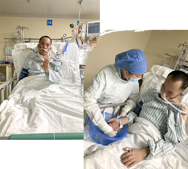 “隔绝病毒不隔绝爱”。疫情之下,这位患者宇哥在ICU里有好长一段时间没有见过家属了。