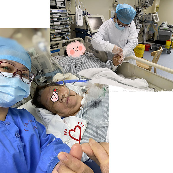 躺在ICU里过了个年的患者阿姨有了很大的好转,精神很好地和我们医护聊天互动。