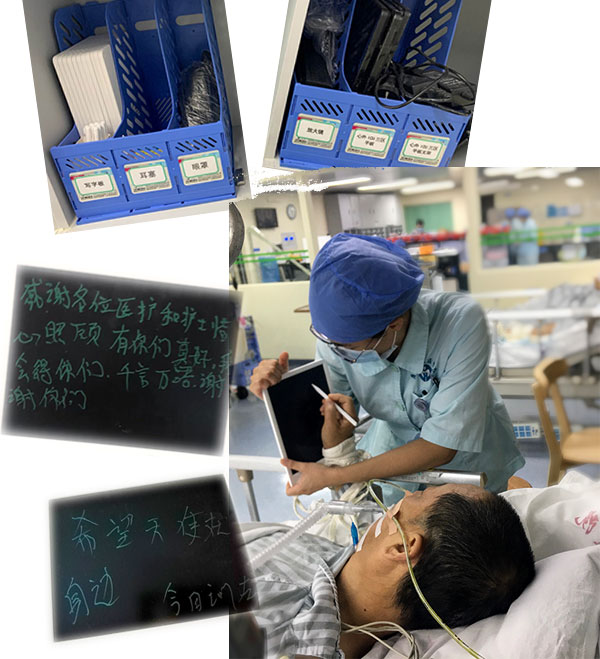 我们心外ICU三区还为插着气管插管等不能讲话的患者提供了写字板,为医护之间的沟通交流提供了多一种有效的方式。