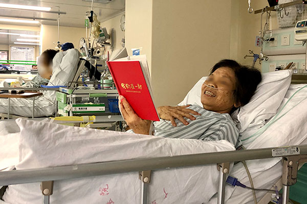 经过不懈地努力,徐阿姨终于逐渐撤掉了IABP机和气管插管。康复科同事就地取材帮助阿姨进行康复训练。