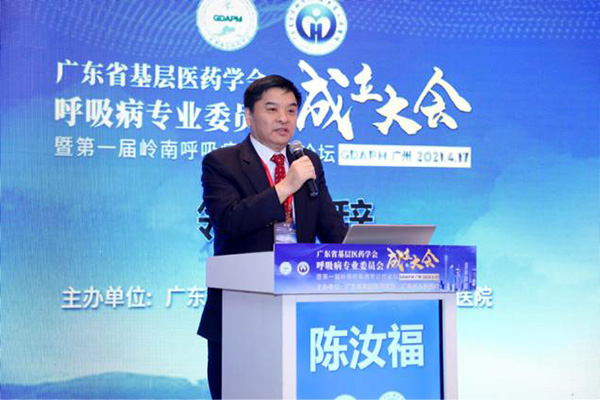 陈汝福会长为大会致辞。他指出,希望呼吸病专委会搭建良好交流平台,帮扶基层医院提高呼吸病诊治水平。 何斌副书记在致辞中提出希望,希望广东省基层医药学会呼吸病专业委员会进一步落实优质医疗资源下沉帮扶基层,高水平医院和基层医院上下联动。