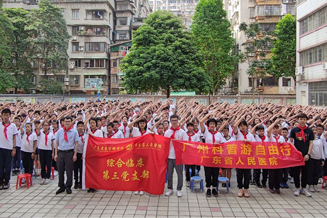 学党史、悟思想、办实事、开新局,在中国共产党成立一百周年之际,广东省人民医院综合临床第三党支部积极开展党组织活动,充分发挥急诊科的优势,用实际行动践行作为共产党员的初心和使命。 5月7日下午,综合临床第三党支部成员走进广州市越秀区红火炬小学,联合开展“急救科普进校园”活动,受到全体师生的热烈欢迎。