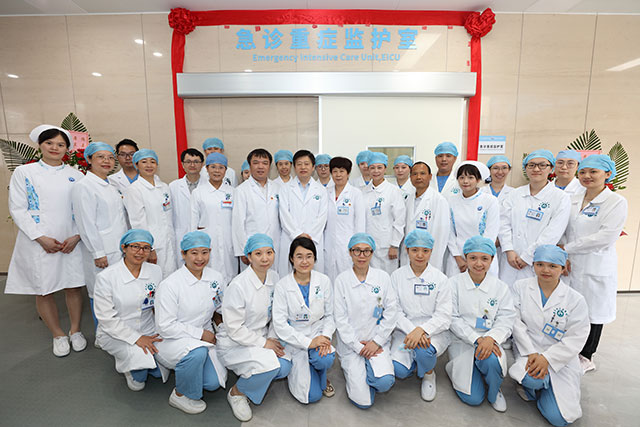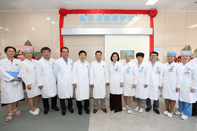 余学清院长、李欣副院长、黄惠根副院长、李勇副院长等院领导共同为EICU揭牌。余院长对医疗环境、病房布局、患者收治分流和医疗安全与质量等方面给予了具体的指导,并提出了相应的要求和期许。余院长特别强调,除了安全舒适的就医环境外,医务人员的工作环境也不可忽视,要不断加强对患者及职工的人文关怀。