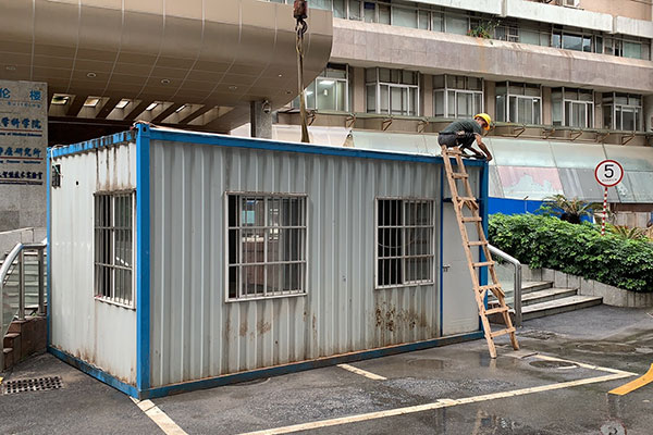 29日中午,医院决定给肾内科来自风险地区的病人提供相对独立的核酸采样空间。基建科立刻选址做方案,最终确定将原发热门诊板房拆除,重新选址搭建,作为肾内科核酸采样用房。方案敲定后仅半个小时,板房便迅速搭建完成。基建科又在1个半小时之内完成了板房的电线网线布置。板房30日正式投入使用。