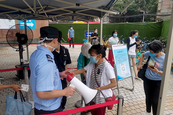 医院各处入口是医院疫情防控的第一道防线,把好入口关,院内的疫情防控就有基本保障。保卫科积极配合,增加安保员配置和执勤点的分布,严格做到每日上万入院人次的佩戴口罩、实时扫码和体温检测的严密防控。来院核酸采样人员数量激增,安保员便用“大声功”持续引导病人有序排队,保障医院的正常运行。