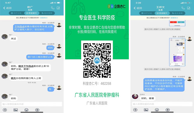 一本《住院患者常见问题100问手册》,帮助患者了解住院期间需要了解的信息;《省医骨肿瘤科住院预约及办理流程手册》,方便患者预约床位及办理入院手续。录制手术前谈话视频、术后功能康复视频,挂在省医骨肿瘤科随访公众号上,方便住院患者了解自身病情和治疗细节,消除顾虑和担心,增强战胜病魔的信心,积极配合治疗,提高临床疗效;在传统节日期间医护团队精心准备小礼物和卡片慰问留院患者,给他们更多的鼓励和精神安慰;邀请省医医务社工进病房,倾听患者的心声,疏导、减轻患者的顾虑,增强治愈的信心;建立临床随访系统,聘请专职科研助理,协助医、护人员与出院患者沟通,及时了解患者出院后的情况及困难,给予针对性指导和帮助,提高患者的生活质量。