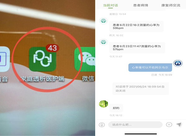 家住高风险地区的何阿姨(化名)小区被封闭管理,这让居家腹透的她发愁了。如何去医院开腹透液?如何将药品配送到家?为此,智慧腹透中心医护团队第一时间调研本中心腹透随访患者现居住地址信息,统计封闭、封控人数,协助患者开腹膜透析液及相关腹透用品,患者及家属可以通过网上支付费用,义工配送腹透液及相关腹透用品进封闭小区,保障了李阿姨可以安心宅在家中完成透析治疗。