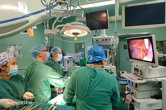 印象最为深刻的就是全腔镜手术操作,心脏大血管外科阿地力主任回忆说,陈主任刚到科室就大力推动全腔镜手术革新。因为所有动作必须建立在良好空间感的基础上,由于缺乏经验,医护人员常常不由自主地想在直视下操作。对此,陈泽锐在手术带教中时常关注着这一点,总是在适当的时机及时给予提醒,帮助心脏大血管外科的医生有效转变观念和操作习惯。