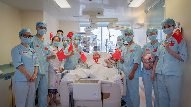 医护人员与老同志共同庆祝党的百年华诞