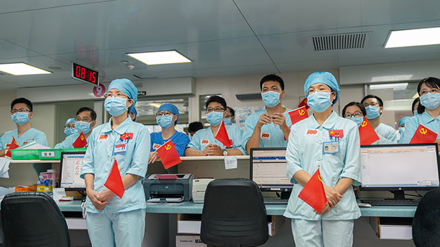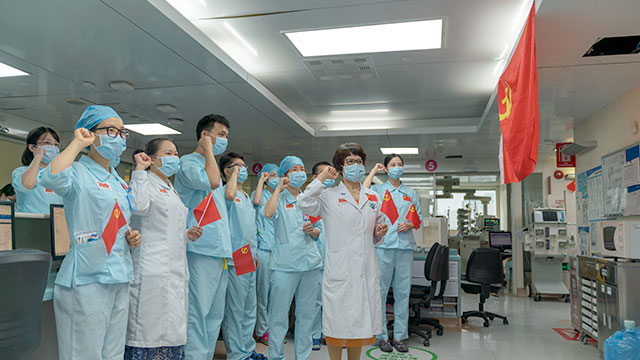 2021年7月1日是中国共产党成立100周年的重要日子,也是我国实现第一个百年目标的伟大日子。在这个不平凡的日子里,老研所第三党支部全体党员、民主党派人士和医护人员50余人在老年重症医学科办公室举行了隆重的庆祝建党100周年活动。老研所副所长陈惠容所长、工会主席张月华出席了活动。