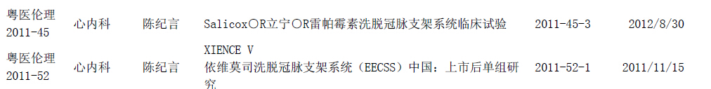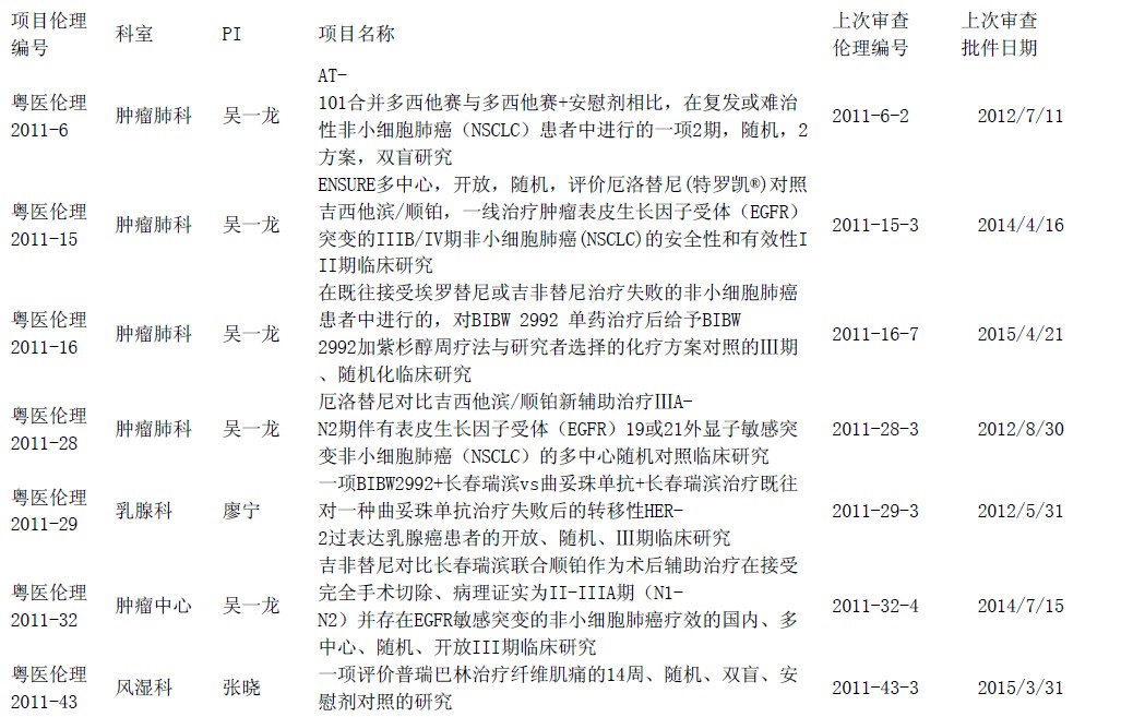 截止2016年3月11日,2011年伦理审批项目中须进行跟踪审查如下(按伦理编号排序):