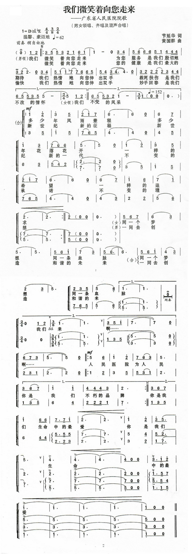 我院院歌《我们微笑着向您走来》,歌声表达了省医员工对医疗卫生事业和医院大家庭的热爱,展示了省医人走进新时代、走向新生活的豪迈,颂扬了省医事业蒸蒸日上,不断取得新的辉煌。