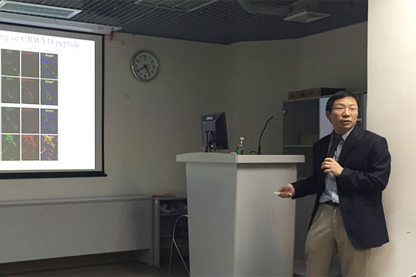 当天下午,曾木圣教授在放射科会议室作了精彩的学术报告。全面的介绍了EBV-LMP2A通过诱导上皮间质转化和肿瘤启动细胞群体参与鼻咽癌发生发展的新机制,阐明了Bmi-1在鼻咽上皮细胞早期转化和鼻咽癌侵袭和转移中的作用,并介绍分子影像学在鼻咽癌分子机制研究中的运用。同时,曾教授还介绍了中山大学中肿瘤防治中心科研平台建设的经验,该中心建立的分子诊断中心、标本库、影像数据库等全院性公共平台,克服了之前由各个科室自行建设和管理造成的重复建设、信息封闭和共享合作困难等难题。他认为跨学科和专业的平台建设能促进学科间的高效合作和有效竞争,全面提升了医院各学科的在临床和科研方面的水平。