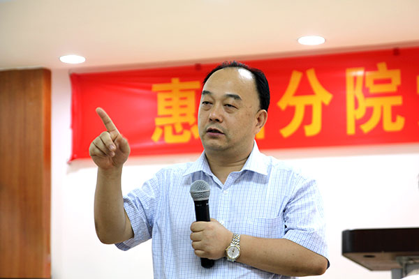 会上,耿庆山书记发表了讲话,他首先对本届总支工作给予肯定,并提出几点要求:一是点亮品牌谈优势。惠福分院各专科要突出自身特色和亮点,体检中心要树立以客户为中心和批量生产的理念,紧跟时代积极创新;精神卫生中心要守护金招牌,提高影响力,“不要让金招牌沉睡了”,要结合心身疾病,加快专科发展。二是精神面貌看希望。耿书记说,医院未来的发展,创新及人才培养是永恒的重点工作。从分院同志的精神面貌看到希望,分院党员同志要在当今优胜劣汰的时代、社会转型大背景下,走先一步,跨前一步,争当排头兵。医院为员工提供大平台,每位员工应该好好珍惜机会,要勇于创新、敢于创新。三是根据标准投选票。耿书记强调,要进一步加强组织建设、作风建设,将临床工作与党务工作、作风建设相结合,贯彻落实“三严三实”,严格要求自己,提高党员队伍的整体素质。大家要发扬党内民主,珍惜手上神圣的选票,按照习近平总书记提出“对党忠诚、敢于担当、个人干净”的干部标准,选出为大家服务的党员干部。