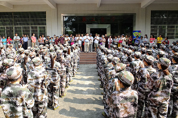 观看新员工军训汇演