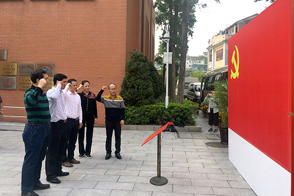 前来中共三大会址纪念馆参观学习的各地党员群众络绎不绝,大家热情高涨,纷纷表示,一定认真学习贯彻十九大精神,铭记党的奋斗历程,不忘初心、砥砺奋进。惠福分院党总支委员在党旗前庄严地举起双手,举行了宣誓仪式,重温入党誓词,庄严的场面让人激情不已。