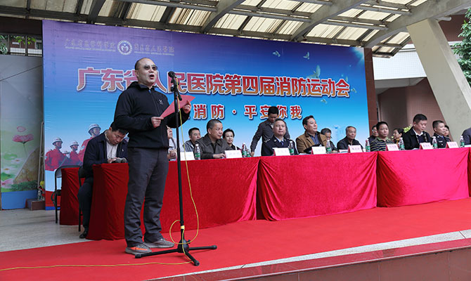本次运动会特别邀请了广东省卫生计生委办公室副主任黄伟彬、广东省公安厅国保局副处长王迎新及广州市消防局、市公安局越秀分局、大东派出所、大东街及各兄弟医院的相关部门负责人。我院徐力新副院长及各党总支书记出席了本次消防运动会。运动会由总务处处长邓南主持。