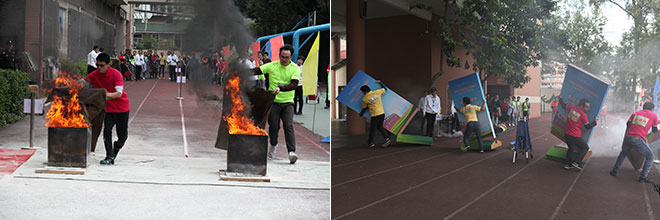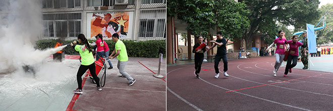 麻袋灭火与干粉灭火主要是考验面对初起火灾时如何利用有效工具进行快速及时灭火,智力竞赛主要考验对消防器材使用功能的掌握,30公斤推车灭火器是考验面对过火面积较大火灾时如何进行灭火,快速穿消防服连接水带及清理障碍物救人更多的考验团队配合及火灾时应变反应能力。整个比赛环节紧张有序,精彩粉尘。赛前各总支精心筹备,总支书记亲自带队组织训练。