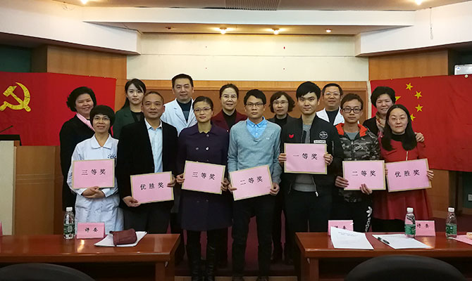 擂台赛在老研所总支冯军东书记带领全体党员重温入党誓词的庄严氛围中拉开了帷幕,接着徐立新副院长也发表了热情洋溢的讲话,鼓励全体党员将十九大精神与临床工作相结合,为省医发展作出应有贡献。综合病区支部支委王中华也结合实际与全体党员一起再次认真解读了党的十九大精神。精彩时刻当然是这次微党课竞赛,本次比赛主题是以“学习十九大报告、学党章体会”为核心内容,参赛选手们结合自己的工作和生活亲身经历,通过精美的PPT为全体党员阐述了各自学习十九大精神的体会和认识:不忘初心,牢记使命,学习十九大的过程中贵在“知行合一”,学习是为了更好地工作、做一名快乐的合格的党员!台上,参赛选手们激情高昂、倾情演译;台下,党员们兴致盎然、聚精会神,特别是互动环节,人人踊跃抢答,现场气氛热烈。经过激烈的竞争,中医党支部余榕键夺得一等奖,综合病区党支部胡培航和康复医学党支部谭金泽获二等奖,其他选手获三等奖和优胜奖。