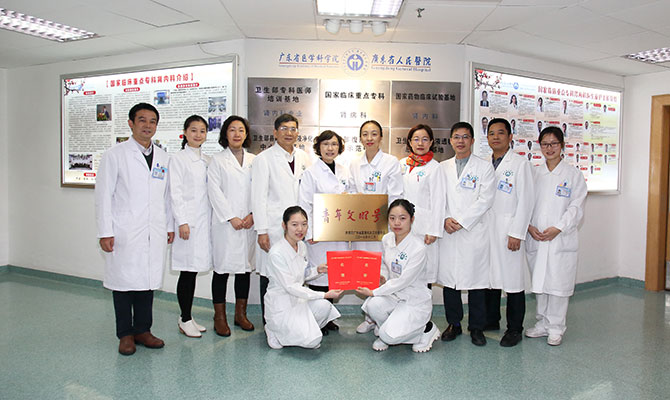 经过近一年的努力,我院肾内科通过广东省直属机关“青年文明号”评选,于2017年12月19日被正式命名为广东省直属机关“青年文明号”,并于2018年1月8日举行挂牌仪式。