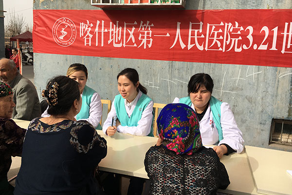 风沙甫定的喀什市阳光格外骄艳。3月21日上午,在这和风温暖的好日子,喀什地区第一人民医院心理二科在小区社区举行世界睡眠日义诊活动,科室主任阿生姑、姜娜娜医生、尼鲁帕尔医生、吐尔洪江医生,以及我院精卫中心援疆专家杨程甲医生等一起为喀什群众精神卫生健康宣传进策献力。