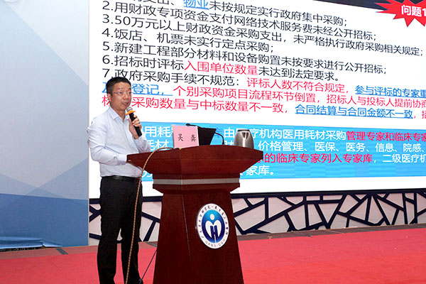 吴龚老师首先梳理了医院采购活动中存在的各种风险,运用大量真实案例深入浅出地介绍了针对存在风险应采取的有效防控措施,从《政府采购货物和服务招标投标管理办法》(财政部87号令)、《政府采购质疑和投诉办法》(财政部94号令)《政府采购代理机构管理暂行办法》(财库[2018]2号)等法律法规层面详细地介绍了医院采购规范化操作,最后他还分享了医院采购疑难、热点问题与案例评析。他强调“文件规定约束是前提、依法进行监督时关键、提高采购人员素质是基本,只有三管齐下,方能使法规落地生效发威”。