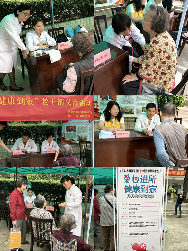 4月12日上午,惠福党总支与农行文德北支行举行党务共建活动,践行十九大精神,为人民群众健康服务。惠福党总支刘广锋、张俊芳、黄红友等8名党员志愿者来到广东省军区广州第六离职干部休养所,提供优质医疗义诊服务,受到他们的热烈欢迎。