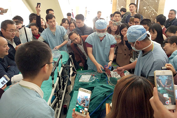 据悉,2017年我院心外科体外循环手术量近5000例,单中心ECMO(体外膜肺氧合)58例,自主创新右心辅助5例,其中ECMO应用范围不断拓展,在年龄上从新生儿到老年患者,方式上从循环支持到呼吸支持,病种从心衰、呼衰到巨大气道肿瘤切除手术、冠脉CTO病变介入治疗等。自我院2011年成为全国首批体外循环培训基地以来,每年定期开展小儿体外循环、心衰的非药物治疗、围术期血液管理、体外生命支持等国家级、省级继续医学教育学习班,每年为全国培养体外循环专业技术人才20余名,培训各类学习班学员300余名。同时,较早在国内将ECMO引入大型赛事的医疗急救和保障体系,通过模拟培训、临床教学、实战演练等方式,将传统CPR(心肺复苏)和ECMO(体外膜肺氧合)相结合,以提高难治性心脏骤停的生存率,为人民群众生命健康保驾护航。