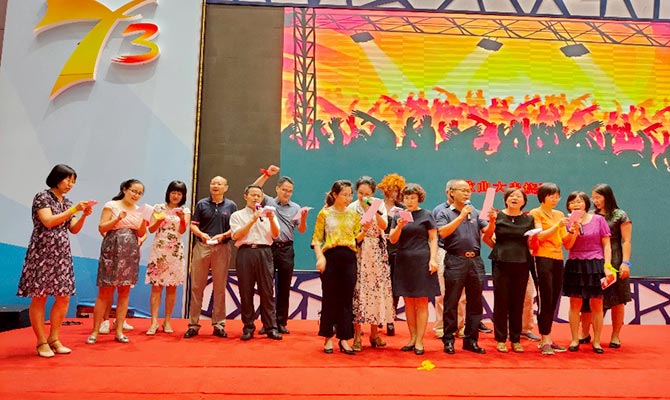 2019年8月15日,由检验科主办的“不忘初心,牢记使命”跟党走——检验科新员工教育及团队建设活动在主体楼四楼多功能厅拉开帷幕。此时的多功能厅,灯光璀璨,乐声悠扬。院党委耿庆山书记、何斌副书记、各总支书记、职能部门负责人出席,与检验科的员工欢聚一堂。