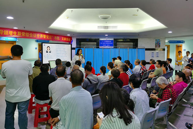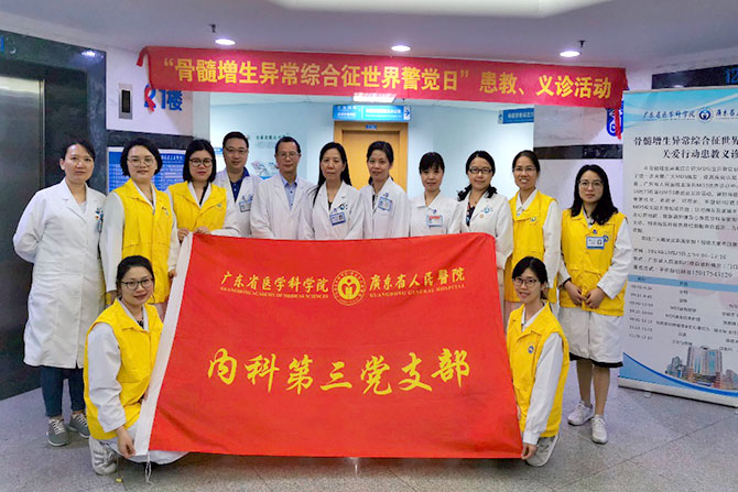 骨髓增生异常综合征(MDS)是起源于造血干细胞的一组异质性髓系克隆性疾病,中国MDS发病率:1.5/10万,且随着人口老龄化发病率上升,中高危型MDS患者远期预后差。为了呼吁大家关注MDS,加强对MDS的重视,国际MDS基金会在2014年10月25日发起了第一个“MDS世界警觉日”。广东省人民医院血液内科每年都会在这一天开展患教或者义诊活动,今年已经是第五个年头了。