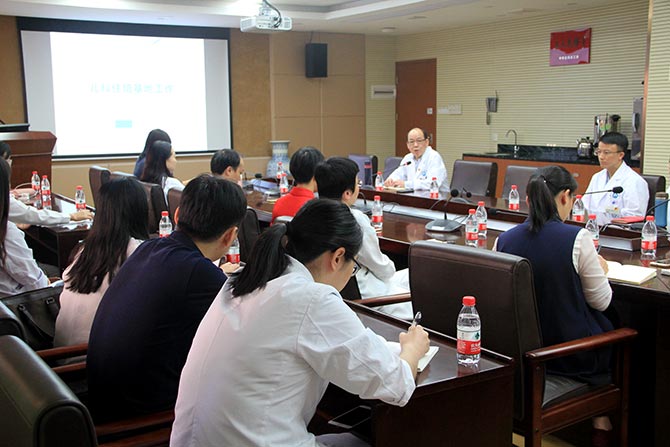 会议上,儿科住培基地教学秘书梁东坡就儿科住培基地建设、儿科住培基地目前基本情况及本年度儿科住培基地国家检查中发现的问题做了工作汇报。汇报提出儿科规培基地建设须牢牢抓住两个“标准”和一个“指标”,即住院医师规范化培训基地认定标准、住院医师规范化培训内容与标准和住院医师规范化培训评估指标。目前儿科基地面临着过程管理欠严谨,培养计划、教学内容及考核达不到分层和动态管理,台账流于形式等问题。
