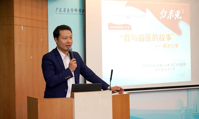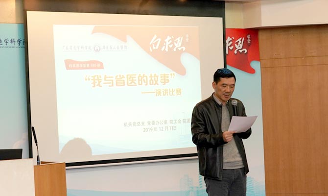 社会化工勤人员是医院一支不可或缺的医疗后勤服务队伍。为深入推进“不忘初心、牢记使命”主题教育,传播正能量,打造有温度的人文医院,12月11日下午,党委办公室、机关党总支、院工会、院团委在东一号楼学术报告厅联合举办社会化工勤人员“我与省医的故事”演讲活动。党委副书记、工会主席何斌出席活动并致辞。广州电视台新闻主播易鸣老师、党委办公室张忠林主任、工会邓南副主席、护理部崔虹副主任等担任评委。参加活动的有机关党务干部、团员青年、医务社工、保洁员、输送陪护人员等一百余人,活动由机关总支书记郑卫平主持。