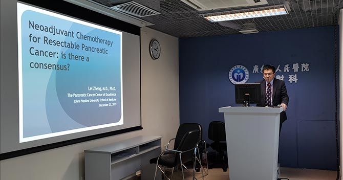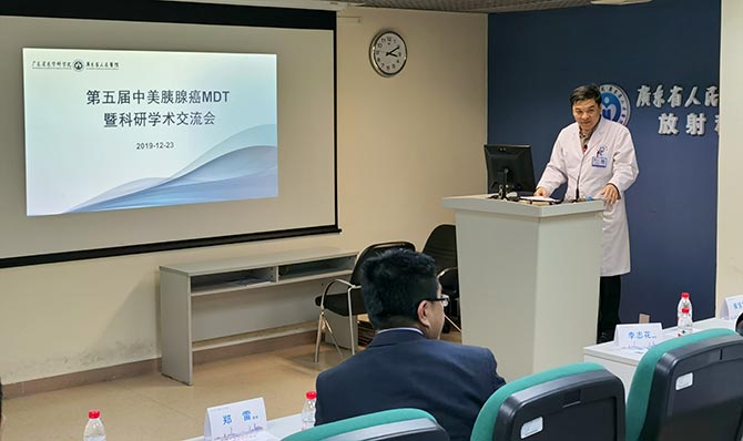 12月23日下午,广东省人民医院胰腺中心“第五届中美胰腺癌MDT暨学术科研交流会”在伟伦楼2楼放射科示教室成功举行。本次MDT学术交流会由我院医学科学院副院长、普外科主任、胰腺中心主任陈汝福教授主持,Johns Hopkins约翰霍普金斯医院肿瘤内科主任郑雷教授为特邀嘉宾。各个科室胰腺癌MDT相关主要负责人均到场参加讨论。会议吸引了进修医生、住陪医生、研究生等参加。