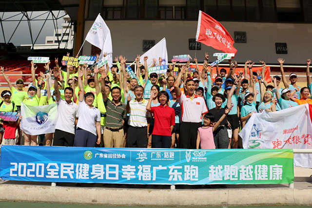 为了进一步贯彻国家体育总局《关于开展2020“全民健身日”活动的通知》精神,广东省田径运动协会发起“全民健身日幸福广东跑”广州跑团健康聚跑活动于8月8日在广东省人民体育场举办,跑程8.8公里。主题口号是:“全民健身日,幸福广东跑,粤跑粤健康。”。广东省田径运动管理中心主任、广东省田径协会副主席麦国强启动健康聚跑的开跑仪式。广东电视新闻频道、体育频道,广州市电视台,广州日报,羊城晚报等媒体现场采访并报道了本次活动。全省线上线下有20+万跑者一起感受了健康奔跑的快乐,一起用奔跑重启广东跑圈,跑亮广东圣地,重新燃起广大跑者的热情,一起向健康出发。