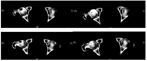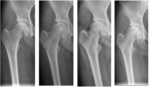 典型病例1:女性,17岁,因长期服用激素导致双侧股骨头无菌性坏死,右侧行干细胞移植和植骨术。术后1年复查股骨头内植骨愈合,股骨头无塌陷。