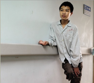 在小泽1岁半的某个傍晚,他和妈妈两人在家,突降大雨,妈妈想起来屋外还晾着衣服,便赶紧跑出去收回来。这时,小泽一个人在家中,“那时候家里还没有通电,晚上都点蜡烛。他(小泽)碰倒了点燃的蜡烛。”小泽妈妈一脸的难过,“我赶紧把他抱出来,但他已被烧伤得不轻了。”小泽妈妈说,后来家人把小泽送往医院,但因为没钱,只能帮小泽做了简单治疗。