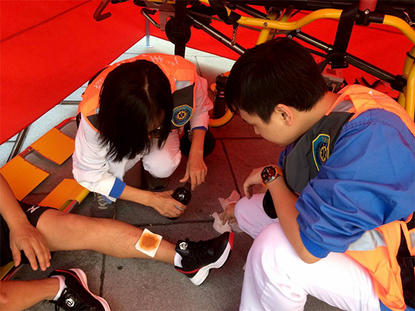 由于当天的天气比较热,而且所有运动员和大部分其他人员都直接暴露在太阳下,因此当天的医疗需求非常多。经过一天的忙碌,我院医疗队共计为约50人进行了专业的医疗处置,对近450人给予了医疗建议和补充水电解质。医疗队一直坚守到下午3点多,直到指挥组宣布关闭终点线指示可以撤离后,才最后一队撤离现场。